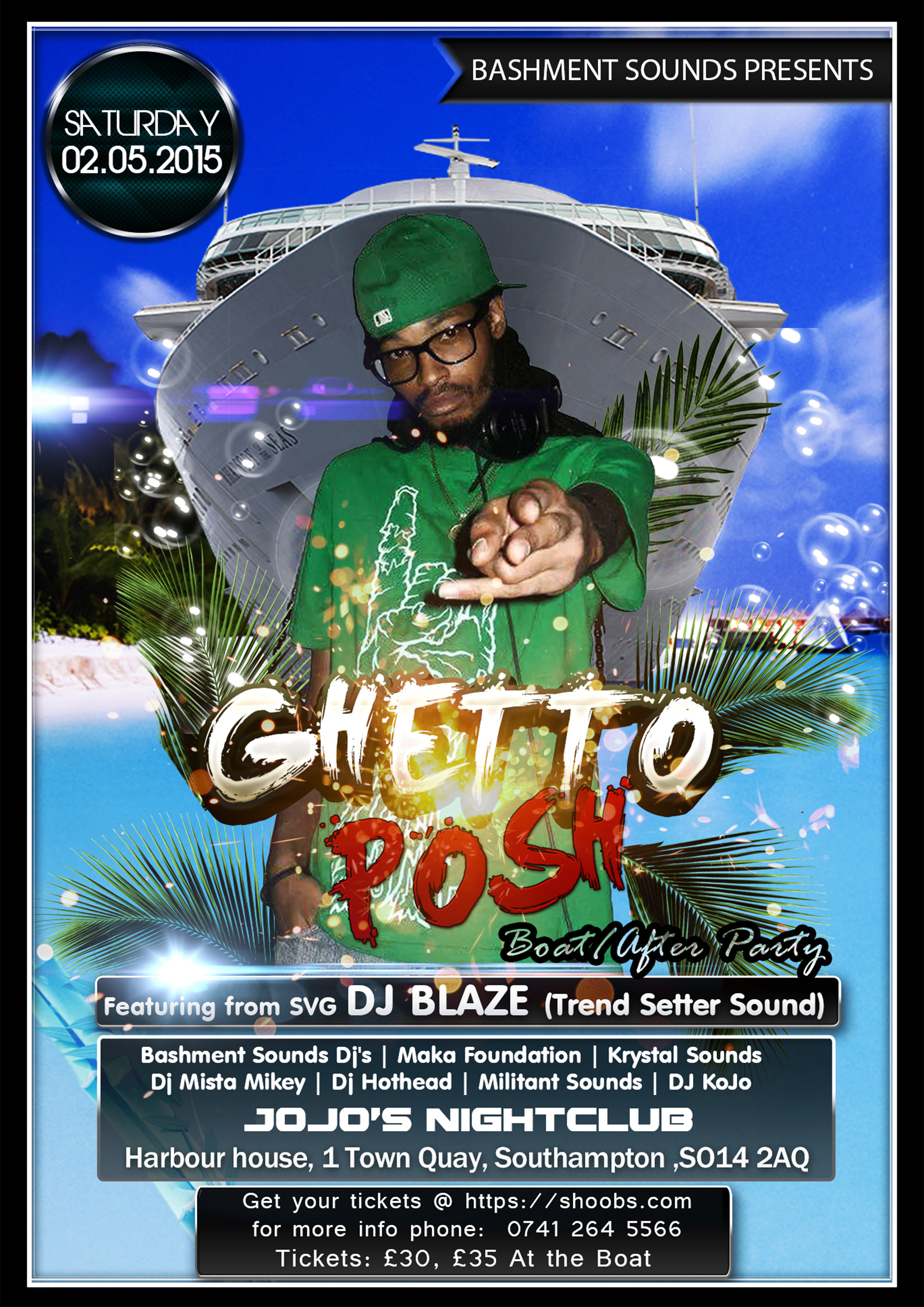 BASHMENT SOUNDS PRESENTS GHETTO POSH BOAT & AFTER PARTY Featuring from XTREME RADIO 104FM (SVG) Dj BLAZE (Trend Setter Sound) http://x104fm.com/site/ DATE:►SAT 2ND MAY TIME:►7:30...