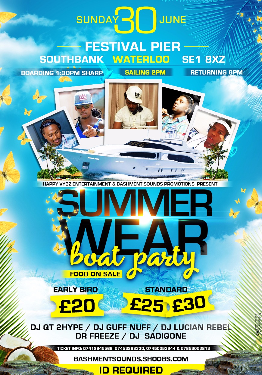 Happy Vibez Entertainment presents Summer Wear Boat⛴Party🎉 Sun 30th June Festival pier Southbank Waterloo SE1 8XZ Boarding 1:30pm Sharp Sailing 2pm Returning 6pm featuring 💥Dj Sadi...